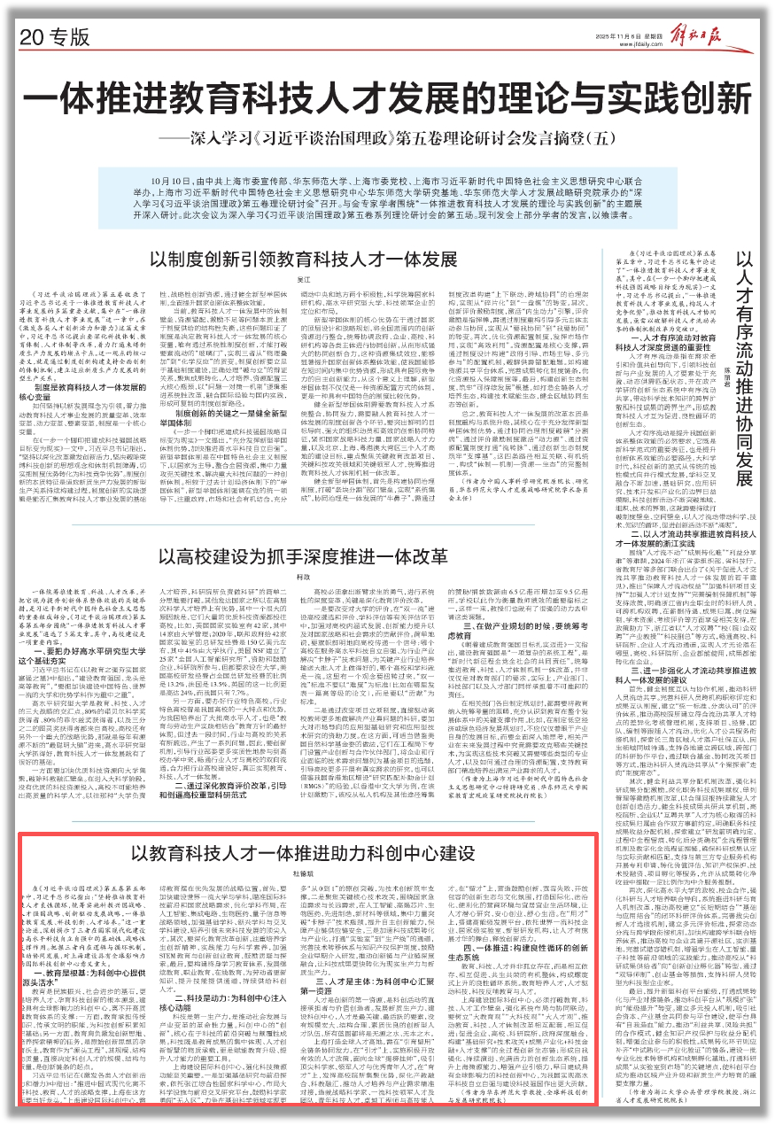 深入学习《习近平谈治国理政》第五卷系列理论研讨会的第五场举行,本次研讨会由市委宣传部、华东师范大学、上海市委党校、上海市习近平新时代中国特色社会主义思想研究中心联合举办,上海市习近平新时代中国特色社会主义思想研究中心华东师范大学研究基地、华东师范大学人才发展战略研究院承办。本次研讨会特邀华东师范大学全球创新与发展研究院院长杜德斌教授等与会专家学者围绕“一体推进教育科技人才发展的理论与实践创新”的主题展开深入研讨。