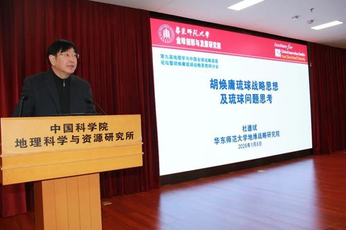 2026年1月8日,第九届“地理学与中国全球战略高层论坛”在中国科学院地理科学与资源研究所(以下简称“中国科学院地理资源所”)举行。本届论坛以“胡焕庸琉球战略思想”为主题,邀请全国相关领域专家及代表,围绕琉球问题的历史经纬、地理格局、战略方案等议题展开跨学科研讨。华东师范大学地球科学学部主任、全球创新与发展研究院院长杜德斌教授应邀作题为“胡焕庸琉球战略思想及琉球问题思考”的报告。